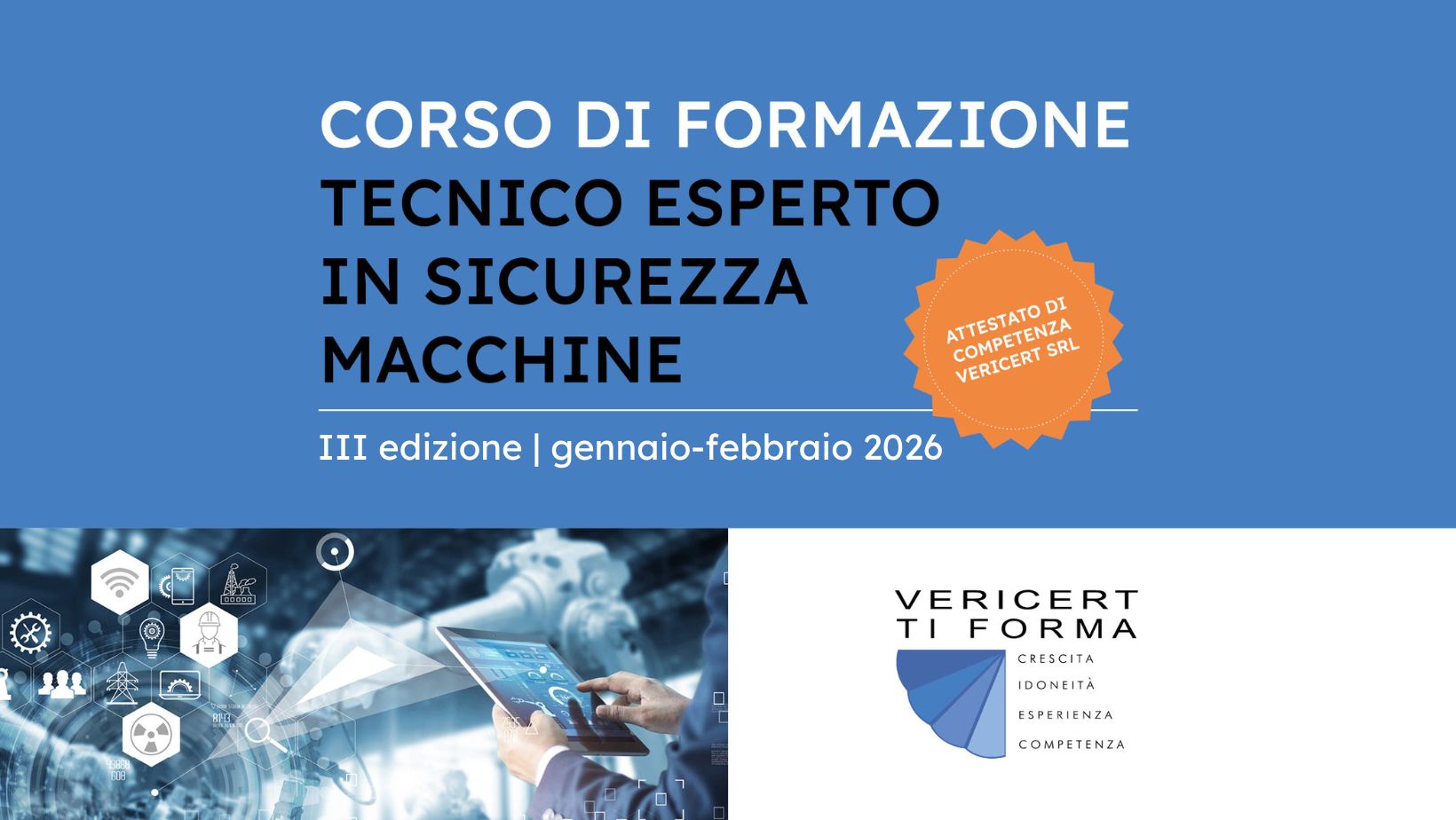 Tra ottobre e novembre 2025 si svolgerà una nuova edizione del percorso promosso da Vericert per Tecnico Esperto in Sicurezza Macchine